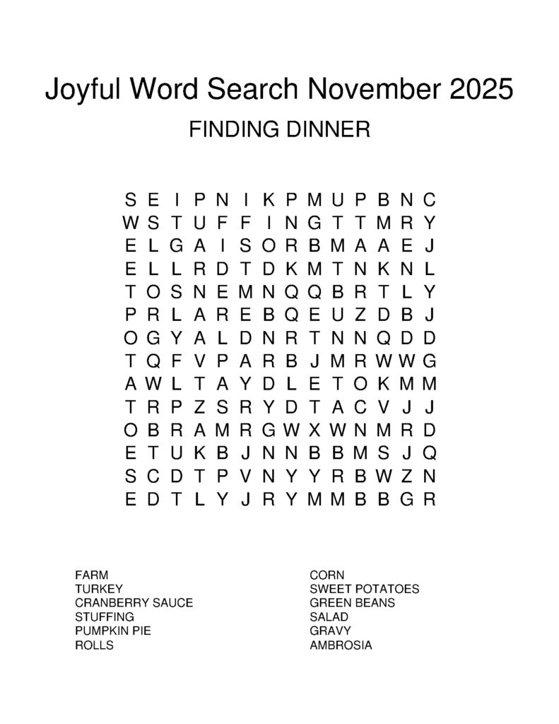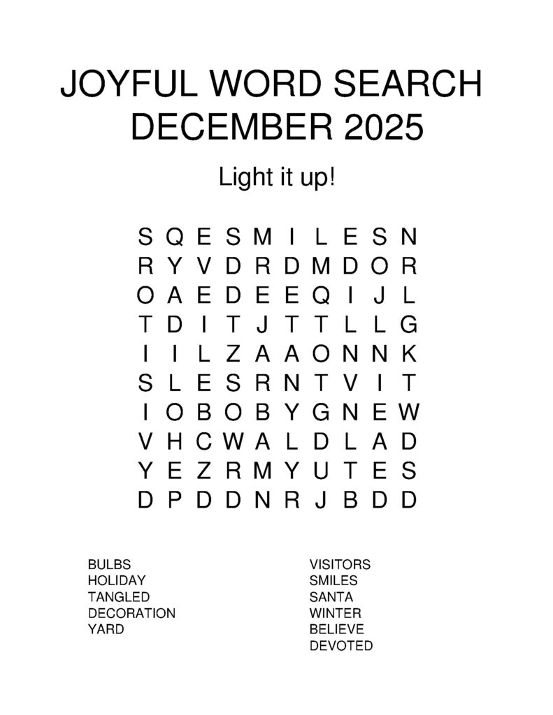 This month’s word search puzzle, which also appears in Joy of Medina County Magazine. The answer key can be found
